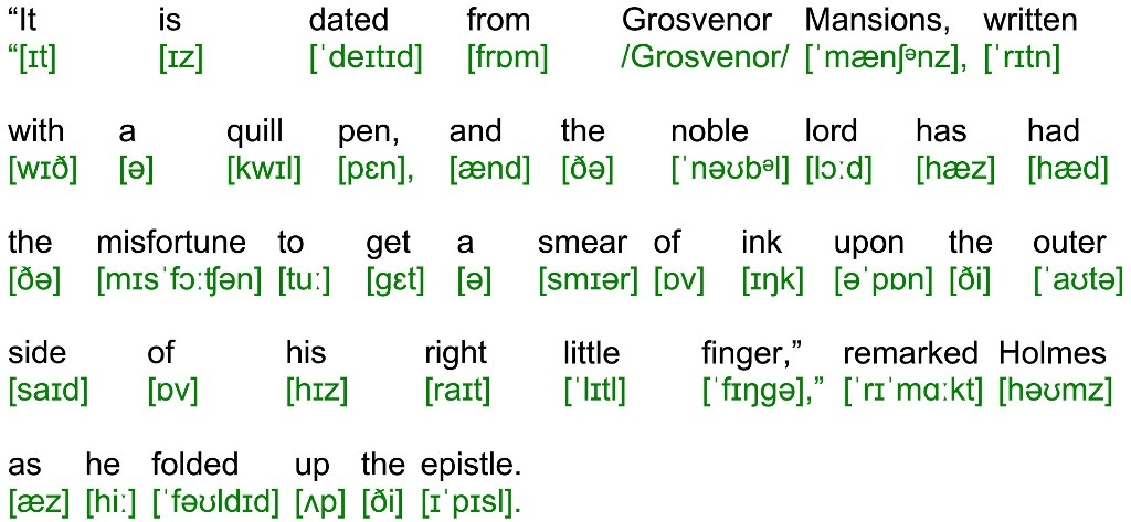 “It is dated from Grosvenor Mansions, written with a quill pen, and the noble lord has had the misfortune to get a smear of ink upon the outer side of his right little finger,” remarked Holmes as he folded up the epistle.