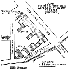 Что же дальше было с деревянным Зимним дворцом? В елизаветинское время в его анфиладных залах были балы с маскарадными развлечениями. Елизавета Петровна любила повеселиться. Ее обширный гардероб постоянно обновлялся. Вскоре после «июньской революции» (так Екатерина II назвала удавшееся ей предприятие) привычные развлечения в этом дворце возобновились. Но потом был «высочайше утвержден» новый план для застройки города, по которому все деревянные строения на Адмиралтейской стороне подлежали разборке. Новые строения должны были быть в центре только каменные.
