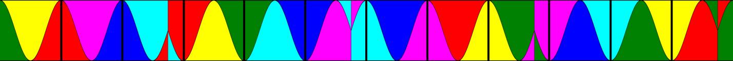 Последовательность зелёный-жёлтый-красный-пурпурный-синий-голубой-красный-жёлтый-зелёный-голубой-синий-пурпурный-голубой-синий-пурпурный-красный-жёлтый-зелёный-пурпурный-синий-голубой-зелёный-жёлтый-красный.