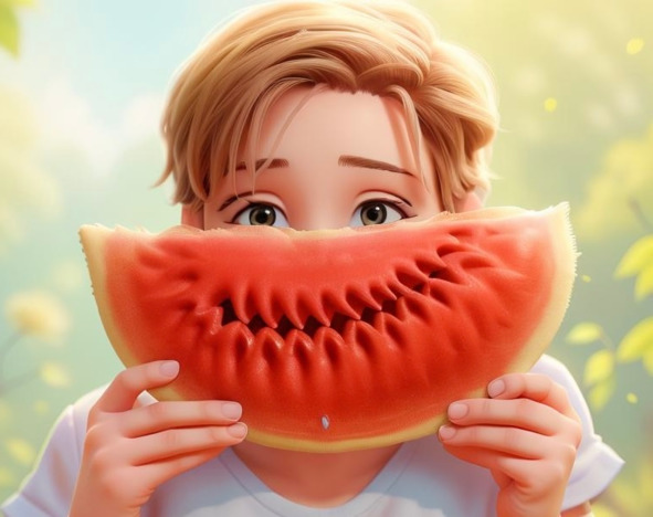 Радостные, мы выложили все наши сокровища на стол. И стали за обе щеки уплетать арбуз, бананы и шоколад.