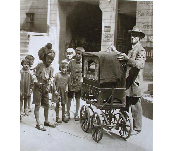 [245.] В стук выколачиваемых ковров иногда вмешивалась шарманка, коричневая, на бедных тележковых колесах… и, вращая то правой, то левой рукой, зоркий шарманщик выкачивал густое «О sole mio». – Шарманщик играет популярную неаполитанскую песню «О мое солнце» (1898; композитор Эдуардо ди Капуо; слова Джованни Капурро). Уличные шарманщики были заметным элементом берлинского городского быта 1920—30-х годов. Ср. в стихотворении Набокова «Утро» («Шум зари мне чудился, кипучий…», 1924): «…Во дворах / по коврам уже стучат служанки, / и пальбою плоской окружен, / медяки вымаливает стон / старой удивительной шарманки» (Набоков 1979: 151). На героя «Подвига» Мартына «находила поволока странной задумчивости, когда, бывало, доносились из пропасти берлинского двора звуки переимчивой шарманки…» (ССРП: 3, 217). До Набокова берлинских шарманщиков упоминали Ходасевич («Нет, не найду сегодня пищи я / Для утешительной мечты: / Одни шарманщики, да нищие, / Да дождь—все с той же высоты», 1923) и В. Шкловский в «Zoo, или Письмах не о любви», назвавший всхлипывание шарманок «механическим стоном Берлина» (Шкловский 1923: 72). Советский писатель М. Слонимский, посетивший Германию во время кризиса в 1932 г., увидел на улицах Берлина такую картину: «…папаша в белой рубашке… вертит ручку шарманки с такой добросовестностью, с какой он привык долгие годы работать у станка. Шарманка поставлена на колеса, и мамаша, сухопарая, … с каменно неподвижным, ненавидящим любопытство и жалость лицом, подталкивает шарманку. Дочка – лет одиннадцати – перебегает с панели на панель, протягивая руку к прохожим. Шарманка с торжественной медлительностью катит по одной из центральных улиц города» (Слонимский 1987: 471). См. фотографию 1925 г. «Шарманщик в берлинском дворе»: