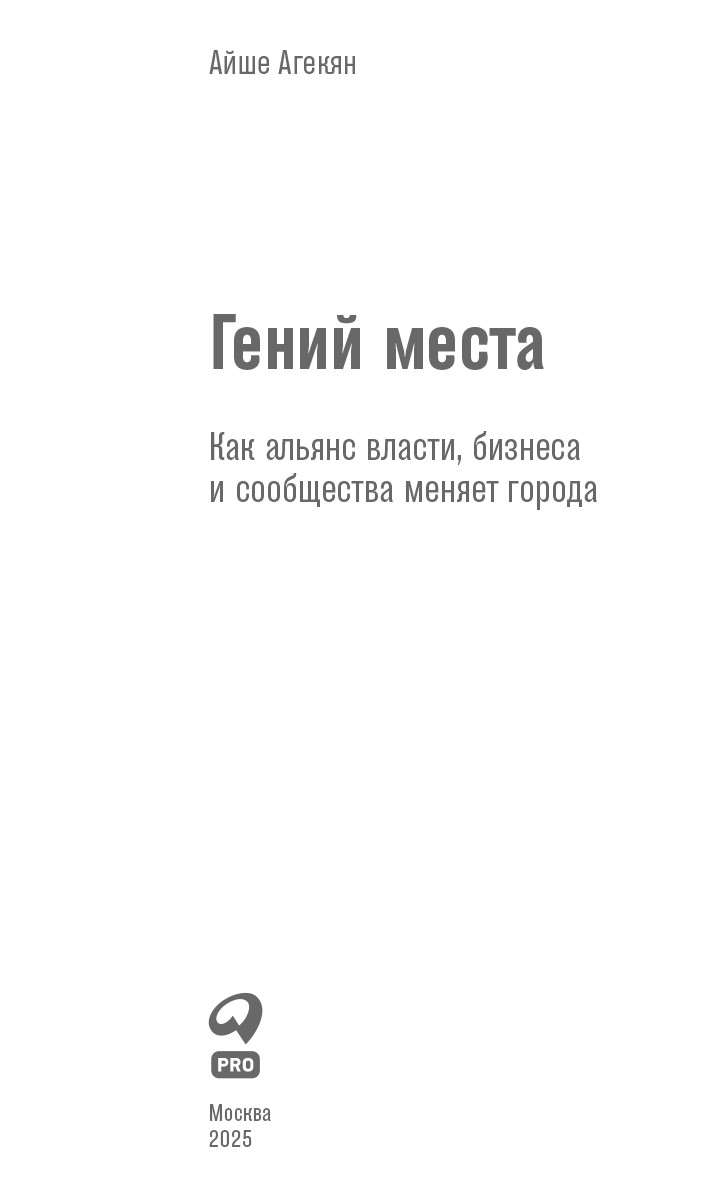Гений места: Как альянс власти, бизнеса и сообщества меняет города / Айше Агекян. – М.: Альпина ПРО, 2025.