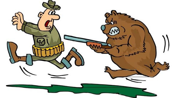 Бывалый: – Постой, постой, у медведя нет хвоста.