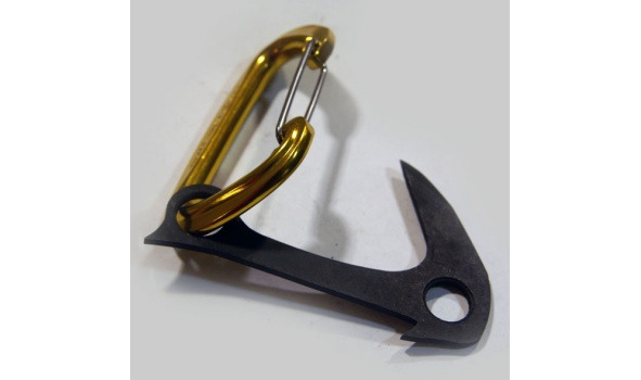 – Это такой крючок с карабином, который вставляется в маленькую дырочку и на который можно повесить лесенку. Но их можно бить не более двух подряд, потом нужно бить шлямбур или скальный крюк. Скайхуки можно бить на известняковых скалах, на твёрдых породах он не идёт.