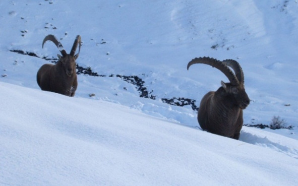 Меня на верёвке выпустили ребята, я подошёл к перегибу и вижу, как на сбросе висит тур на верёвке, закреплённой на рогах, и задними копытами стоит на снегу, вытанцовывая. Я вытащил ножик, ребята меня аккуратно приспустили, я обрезал верёвку возле узла и тур опустился на снег.