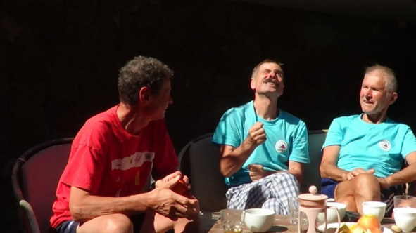 Тут ребята проснулись, повылазили из палаток и накинулись на меня с вопросами. Так и так, говорю, туры спёрли рюкзак с продуктами и железом. Как спёрли, залезли на площадку, рюкзак на плечи и поскакали. Нет, говорю, я хотел вам мясо заготовить, а он упёр рюкзак.