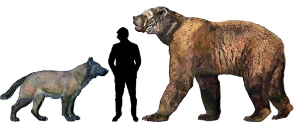 Короткомордый медведь имел высоту в холке до 2м, а на задних ногах мог быть почти 4м! При том, что вес его был около 800 кг (а крупных самцов до 1400 кг), он мог развивать скорость 80 км/ч, и выдерживать ее на протяжении длительного времени. В отличие от современных медведей, их длинноногий родственник был прекрасным бегуном.