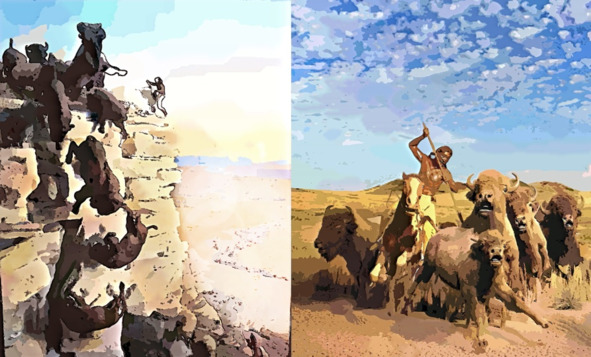 Долгое время в Америке существовали два подвида – лесного и степного бизона, но пока многочисленные табуны лошадей занимали все свободные территории, а пищи в лесах вполне хватало, бизоны прекрасно жили на окраинах Равнин. Конкуренции лошадям они не составляли, поскольку лошади имеют быстрое пищеварение и обычно едят на ходу, срезая резцами верхушки трав, где находятся семена и злаки, пережевывая пищу небольшими порциями. Бизоны же, как парнокопытные, предпочитали медленное переваривание более мягкой травы в многокамерных желудках. Оба вида прекрасно существовали в Америке и Евразии до начала голоцена, то есть конца Ледникового периода 12—10 тыс. лет назад. Но вот по окончании этого времени, лошади в Америке исчезли, распространившись по Евразии, а бизоны наоборот, исчезли в Евразии и заняли все Великие Равнины от Канады до Мексики.