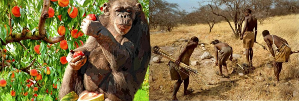 В Африке же, где конкуренция была высока, а агрессивность грозила неприятными последствиями, малочисленные (хоть и увеличившиеся в численности, по сравнению с предками) группы охотников были вынуждены менять свое поведение, то есть становиться еще более добродушными, терпимыми, гостеприимными и коммуникабельными, приспосабливаться к обилию родственников и не родственников. Межгрупповая борьба за ресурс, если она ведется на уровне наращивания не клыков, а знаний, только увеличивает ресурс памяти и обучаемости. Вероятно, с тех самых пор, в человеческой культуре закрепилась эволюционная ценность ума и доброты. В стабильных условиях внутривидовой борьбы они скорее мешают накоплению ресурсов, но в течение сотен тысяч поколений, когда условия внешней среды были разнообразны и агрессивны, а ресурсы ограничены, выживали умные, способные делать что-то необычное или необычным образом и, так добывать пищу. И те, кто делился добытым с другими, контролировал эмоции и держал в голове множество факторов о соплеменниках и других группах, больше использовал мимику, речь, ритуальное поведение, подмечал детали, обменивался опытом, соревновался и т. д. Это давало возможность более результативных совместных действий, повышения количества идей в обществе…