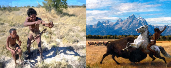 Тут я бы хотел заострить внимание на одном важном моменте, который также привел к изменениям сознания и, как следствие, появлению искусства. Во времена эректусов, как всегда, одни из них промышляли, по большей части, охотой, другие совмещали собирательство и охоту, а третьи вообще вернулись к собирательству. Это зависело, в первую очередь, от природных условий, но не могло не отразиться на функционировании, а затем и строении мозга. Эти особенности сохраняться на протяжении всей истории человечества, вплоть до современности. Поэтому сейчас давайте сравним мышление собирателя и охотника и разберемся, насколько они различны.