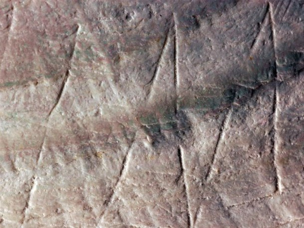 Правда, один из самых ранних продуктов «блуждающего разума» найден не в Европе, а на Яве, но относится он к тому же времени – 1,2—1,0 млн. лет назад. Там какой-то неизвестный эректус вырезал акульим зубом на раковине мидии непонятные линии. А линии, как мы помним – самое простое и очевидное, что видит глаз и замечает мозг. В природе мало прямых линий, а здесь – явная демонстрация идеала восприятия, которая может означать и изображение зубов, и символ защиты, или вообще нечто непередаваемое словами, и не имеющее понятий. Важно то, что здесь явно в мозгу человека забрезжила какая-то идея, не связанная напрямую с едой, размножением или доминантностью, которую он воплотил в реальном предмете. Хотя до настоящего искусства было еще далеко.