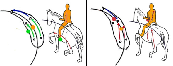Разберем простой пример о сгибании на вольту, не так важно, делается оно под седлом или на корде. Сгибание в зоне ребер у лошади крайне ограничено, а для некоторых почти невозможно, и путь к нему крайне непрост. Поэтому всегда есть то, что человеку сделать «удобнее». Только «удобнее» не означает «хорошо» – это имитация, но не естественный ход процесса. Легче всего направить лошадь, например, влево, согнув ей шею поводом в эту сторону. Но если она не будет сама желать держать внимание на этой стороне, не захочет стремиться туда, если вы не объясните ей, что остистые отростки позвонков должны находиться вертикально, а место сгибания в определенной зоне, то лошадь будет формально подчиняться, но внутренне стараться убежать от неприятного воздействия. Это бегство и есть истинный ход процесса, который заставит ее отворачиваться от источника неприятностей, как отворачивается ребенок, которому пихают в рот ненавистную кашу. В результате каша оказывается везде, кроме как в ребенке. Здесь происходит тоже самое. Лошадь изгибается наружу, напрягая те мышцы, которые она должна расслаблять, от чего происходит искажение работы суставов, перенапряжения в постуральной мускулатуре и т. д. Всадник своим весом и неверным положением тела только усугубляет ситуацию. Это ведет не к улучшению, а к ухудшению, как здоровья, так и взаимопонимания.