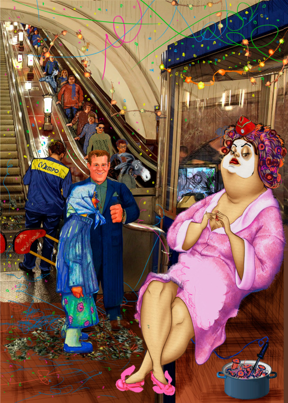 В метро охранница турникетов сидела в своей прозрачной будке в пышном махровом розовом халате, в теплых тапочках-зайчиках в тон банно-домашнему одеянию, с ушками, болтающимися по полу. Перед входом в будку стояла алюминиевая кастрюля с воткнутым в нее кипятильником, а бурлящая вода поднимала со дна большие китайские бигуди с резинкой. Белоснежная косметическая маска на лице и красная, невысокая, с кокардой метрополитеновская шапка, водруженная на еще не ухоженную голову, придавали работнице метро вид участника Венецианского карнавала, вернее, его Винницианского филиала.