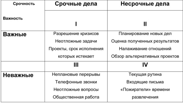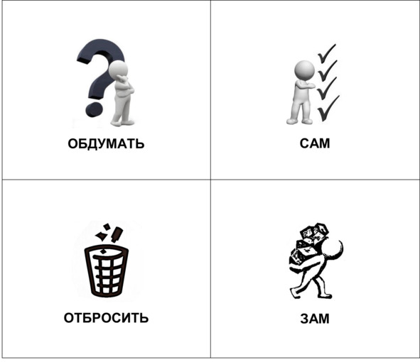 Таким образом, мы имеем возможность все свои дела рассортировать по 4-м квадрантам: