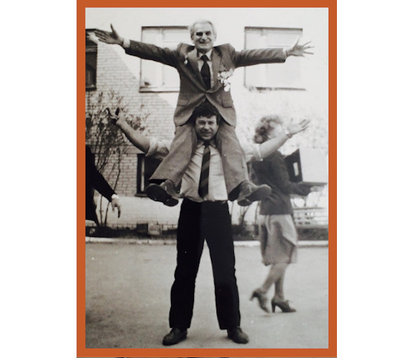 Со временем, эта артель, преобразовалась в Челябинскую обувную фабрику, но основателем обувного преобразования в жизни города стал именно мой папа. Он очень уважительно относился к своим сотрудникам, и пользовался непререкаемым авторитетом. Я часто в детстве участвовал в праздничных мероприятиях у него на предприятии и видел, как сотрудники выражали свою радость от такого директора. Да вот убедитесь сами, глядя на снимок ниже. Где ни будь вы ещё видели, чтобы директора так носили на плечах, с искренней радостью? Вот и я об этом!