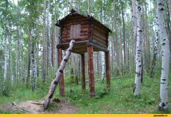 – А вот предки здешние, дураками, точно не были. Лесные поляны в глубине лесов, в пору половодий, заливались водой. Если запасы не сохранить, то не выживешь. Единственный выход – поднять амбар (житницу) повыше, чтобы сохранить семена и продукты в отдельном, холодном помещении. Такие амбары, до сих пор, встречаются в селах Сасовского района и Мордовии. На сухих землях перед домом устраивают полуземлянку и хранят там овощи, зерно и ценные вещи. А на болотах без столбов никак. Столбы, окуренные дымом, хорошо выдерживали сырость и не заражались древесными насекомыми. Отсюда «избушка на курьих ножках». Умерших людей в болоте тоже не захоронишь. И кострище устраивать опасно. Вот и строили в стороне отдельные избушки «избы смерти», чтобы потом, при возможности эти «гробы – домовины» сжечь, а прах захоронить.