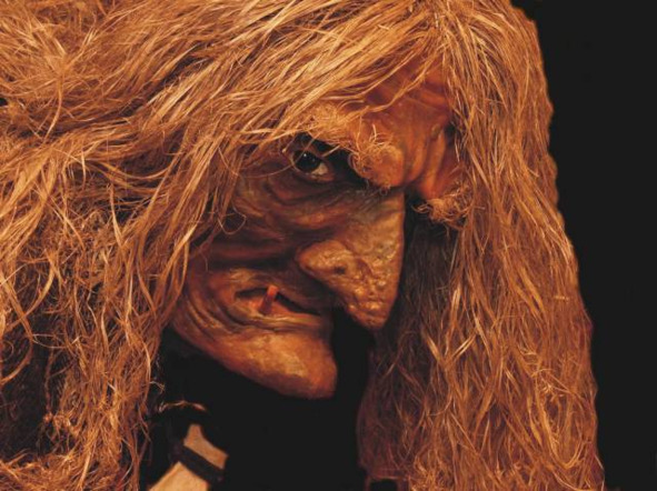 Прямо напротив Катерины на неё глядела страшная Баба-яга. Баба-яга, ухватившись за метлу, пыталась оторвать ступу от земли и улететь в дремучий лес. Но другая Баба, помоложе, замахала руками: