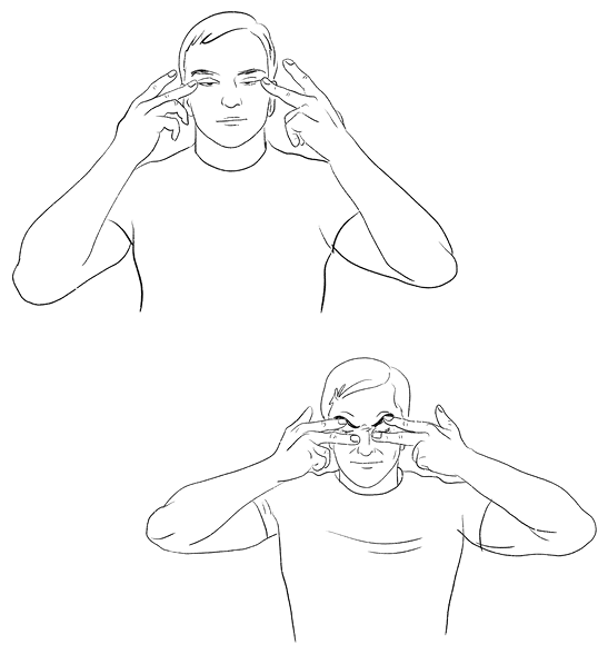 Рис. 3, 4. Положение пальцев на глазах и растяжение