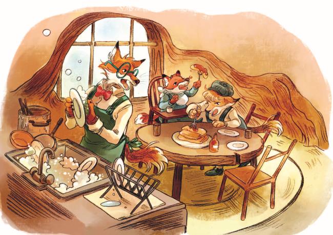 Эрнест приоткрыл глаза. Маленький лисёнок в ползунках сидел верхом у него на животе и потирал глаза: это был его младший братишка Лотар, которому только что исполнилось два года и девять месяцев. В лапке он держал свою любимую игрушку: старенькое полотенце, в два раза длиннее его самого, с четырьмя вышитыми на нём лисичками. Лотар часто таскал это полотенце за собой по коридорам, опрокидывая по пути разные предметы. Чтобы окончательно проснуться, он облизнулся, пригладил торчащие усики и громко зевнул, широко разинув пасть, так что стали видны крохотные зубки. Эрнест подавил улыбку, сделал вид, что потягивается, и набросился на братика с объятиями и поцелуями. Тот со смехом попытался было спрятаться за подушку, на которой недавно лежал. Но старший брат оказался проворнее, и, когда Лотар сдался, Эрнест чмокнул его в последний раз в щёчку и повёл за собой в ванную комнату, чтобы умыться. С нижнего этажа уже доносился восхитительный аромат завтрака.