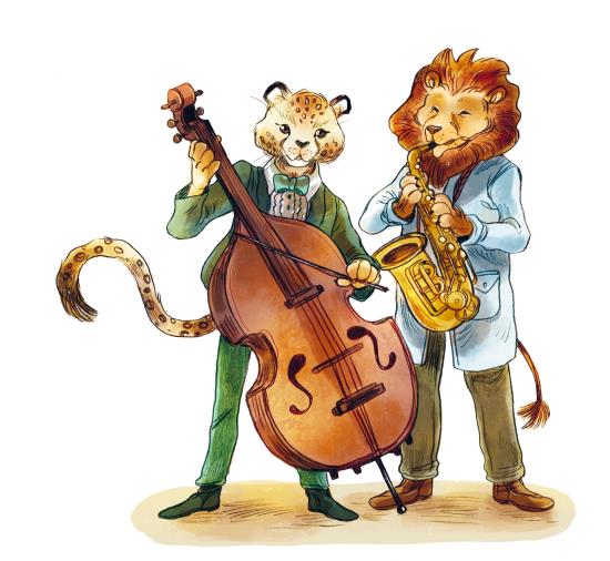 На праздник приехали многие звери из Звёздных гор и с берегов Бурного моря, и, когда распахнулись двери магазина, туда устремились барсуки, еноты, гризли в сюртуках и землеройки в бальных платьях. В магазине восхитительно пахло пирогами с ревенём и абрикосами. Хозяева городской библиотеки, Кроты Руссо и Розалия, подавали посетителям буфета, устроенного возле кассы, запечённые овощи и пончики с начинкой из полевых цветов. В глубине торгового зала, на освещённой свечами импровизированной сцене играл джазовый квартет: два трубача, саксофонист и контрабасист. Гости танцевали, а со стены на них одобрительно смотрели портреты трёх основателей книжного магазина. Лис Жерве восседал в своём кресле на колёсах и с ужасом наблюдал за весёлой публикой, скакавшей вокруг него под громовые раскаты труб, то сердитые, то радостные рулады контрабаса прославленного Гепарда Гаспара по прозвищу Ворчун и рёв саксофона легендарного Льва Леона. Но он не решался высказывать неодобрение, поскольку Ариэлла пригрозила, что столкнёт его вместе с креслом в пруд, если он сделает хоть одно замечание гостям.