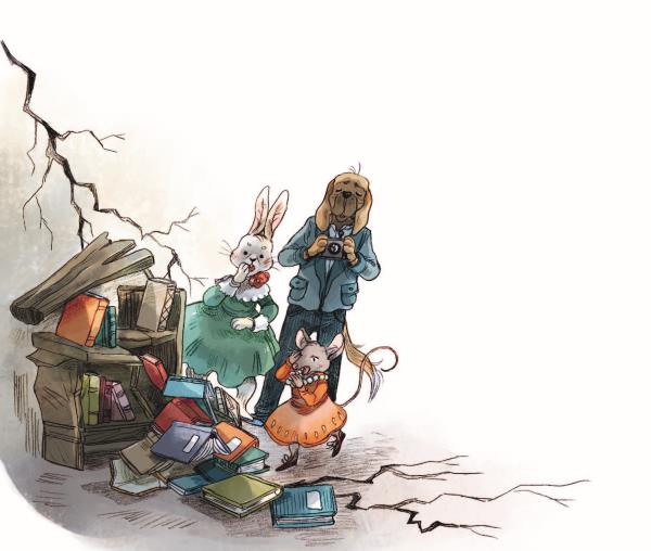 Оскорблённый Бартоломео решил укрыться на кухне, чтобы не навлечь на себя новых упрёков. Безусловно, кролик делал полезное дело, однако его поведение начинало действовать на нервы. Сидевшие за столом из вишнёвого дерева Ариэлла и Жерве завтракали остатками вчерашнего угощения, то и дело поглядывая на потолок. Что за беда приключилась с их родным деревом? Книжный магазин существовал уже восемьдесят лет, но, если верить документам о праве собственности, дуб вот-вот должен был отпраздновать свой пятисотлетний юбилей. Размышляя обо всём этом, Бартоломео погладил по плечу своего деда, который с усталым видом откинулся на спинку своего кресла на колёсах. Что случилось с этим могучим лисом, который запросто переносил с места на место огромные стопки книг, когда наступало время пересчитывать товар? Куда подевался лис-сладкоежка, который как-то раз вломился в книжный магазин среди ночи? Он стал таким же хрупким, как и их любимое дерево.