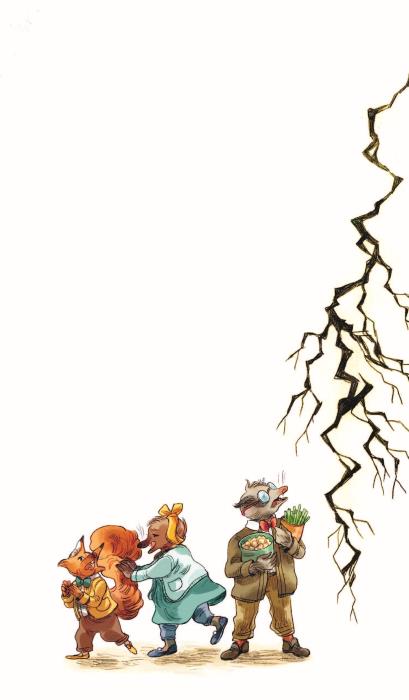 Эрнест кивнул и показал отцу кусок мела, зажатый в лапе. С тех пор, как лисёнок научился писать, он носил на шее грифельную доску на верёвочке – это позволяло ему общаться с посторонними. Дома в этом не было нужды, там все его понимали, но доска оказывалась весьма полезной, например, в бакалейной лавке Зелёного Бора, чтобы спросить Сороку Пруденс о новых товарах или сообщить о своей аллергии на какие-то продукты. В школе Эрнест с помощью доски отвечал на вопросы учителей. Единственное, что доставляло ему неудобство, – так это вечно измазанные мелом лапы!