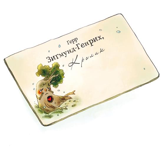Когда Бартоломео был помоложе, ему доводилось присутствовать на представлениях театральной труппы Лисы Ариэллы, его горячо любимой и, как бы это сказать помягче, не совсем обычной бабушки. На этих представлениях он встречал удивительных зверей, которые выступали на сцене вместе с ней. Наутро после катастрофы бабушка протянула ему визитную карточку своего партнёра по труппе, Кролика Зигмунда-Генриха, на которой он с удивлением прочёл: «Герр Кролик Зигмунд-Генрих, дипломированный древопсихолог. Занимается проблемами листопада, эмоциональной нагрузки на кору, стрессом при смене времен года и избыточным истечением древесного сока. Вместе мы сумеем докопаться до корней ваших заболеваний». В данный момент пожилой зверёк с седеющей бородкой, с длинными ушами, заросшими густым мехом, облачённый в тёмный сюртук, в маленьких круглых очках, с фонендоскопом, висящим на шее, и с карманными часами в лапе занимался именно этим: Кролик Зигмунд-Генрих, вытянувшись во весь рост, прижимался к стволу дуба и пытался расслышать голос тяжелобольного дерева. И, судя по растерянным мордам окружавших его зверей, он был единственным, кто слышал этот голос и жалобы.