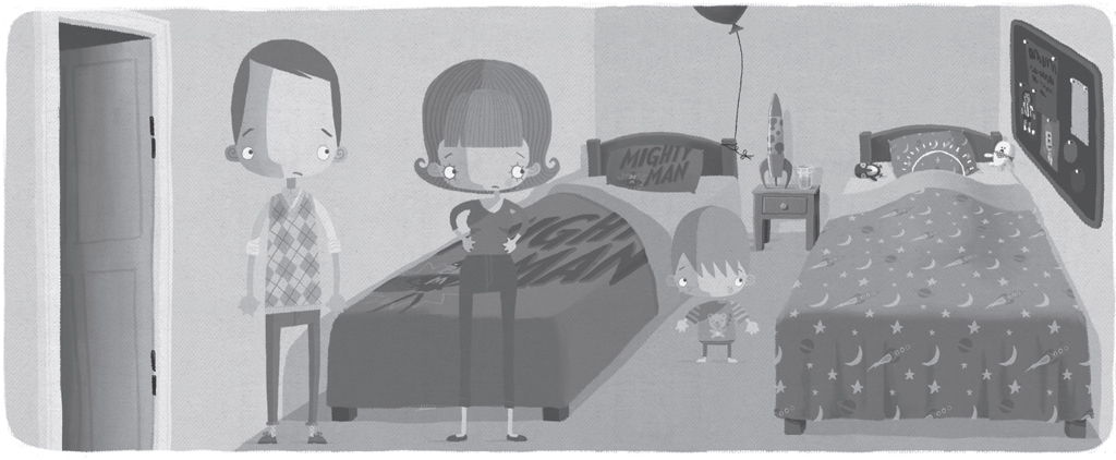Mr and Mrs Lambchop looked about the room. A shape was visible beneath the covers of Stanley’s bed, and the pillow was squashed down, as if a head rested upon it. But there was no head.