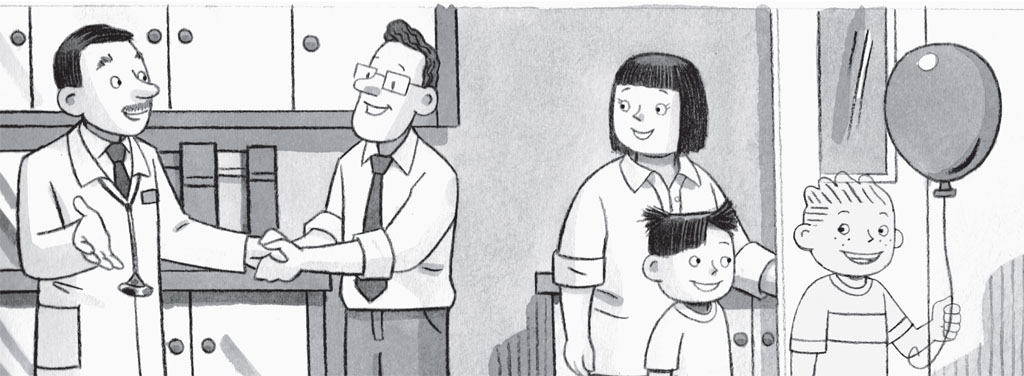 ‘Head ache?’ Doctor Dan asked Stanley’s balloon. ‘Throat sore? Stomach upset?’