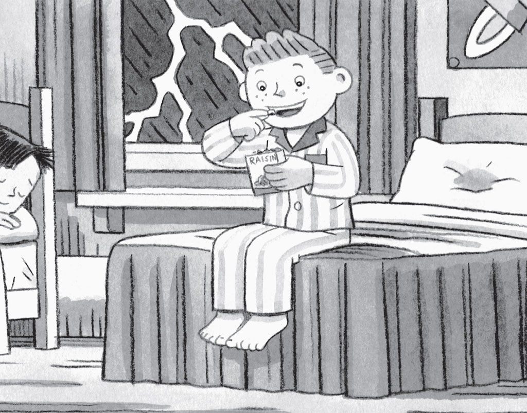 Stanley found the little box of raisins on a shelf by the window. He ate one.