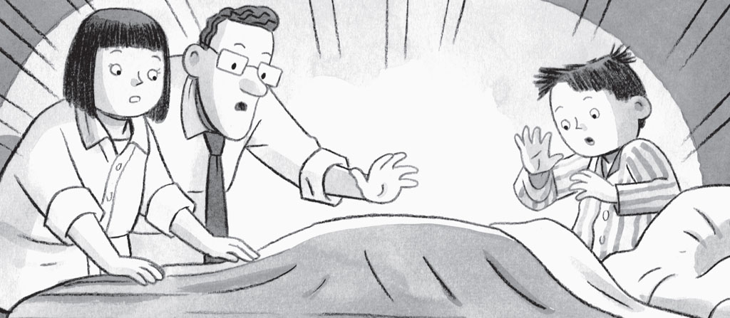 Mr and Mrs Lambchop looked about the room. A shape was visible beneath the covers of Stanley’s bed, and the pillow was squashed down, as if a head rested upon it. But there was no head.