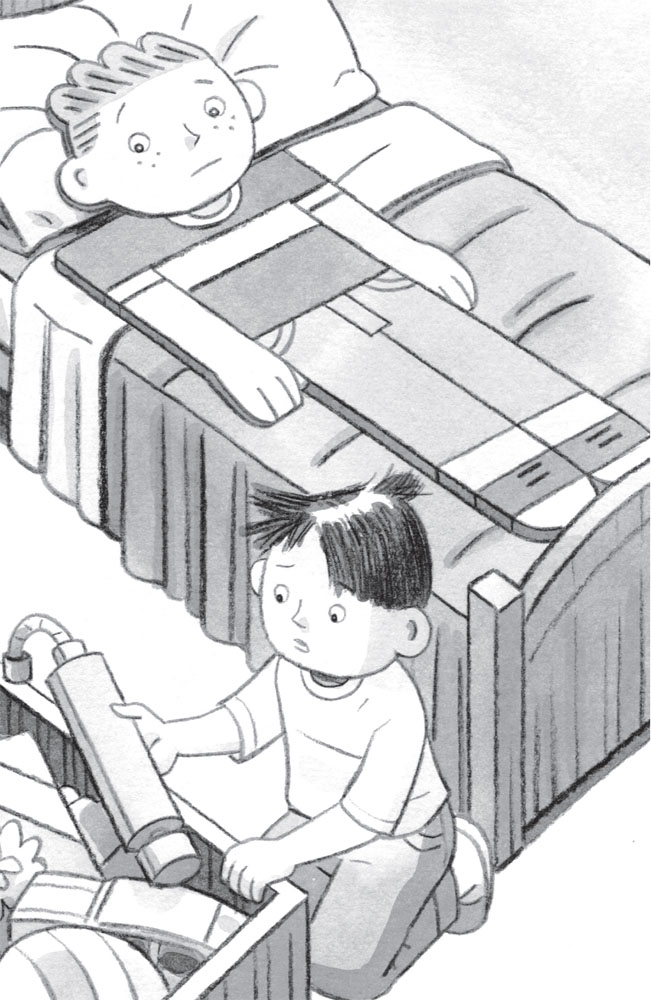 While Stanley filled his backpack, Arthur bounced a tennis ball. ‘Let’s go,’ he said. ‘Here! Catch!’