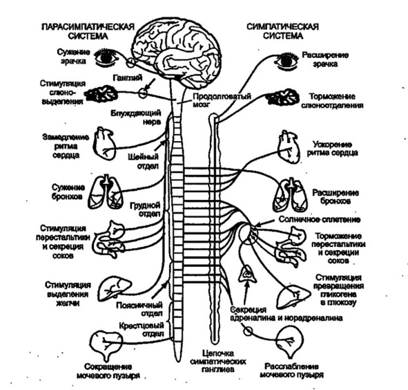 А теперь немного скучной теории. Вегетативная нервная система человека отвечает за нервную регуляцию функций всех органов и тканей организма, и состоит она из двух частей: симпатической и парасимпатической.