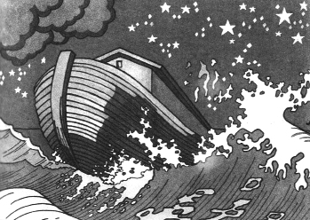 Через семь дней начался проливной дождь, и шел он сорок дней и ночей. Погибли в воде все люди, звери, птицы. Только Ноев ковчег держался на воде. Наконец дождь прекратился. Вода спадала целых сто пятьдесят дней. Когда Земля высохла, Ной вышел из ковчега и снова стал разводить скот и обрабатывать землю.