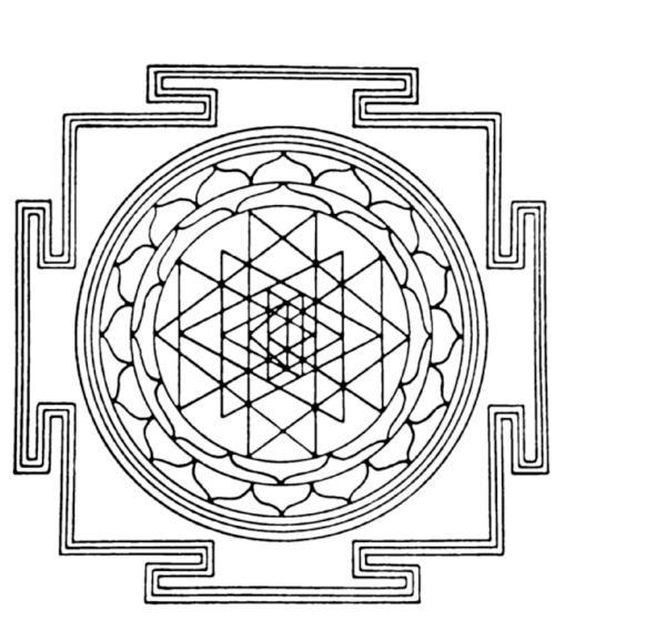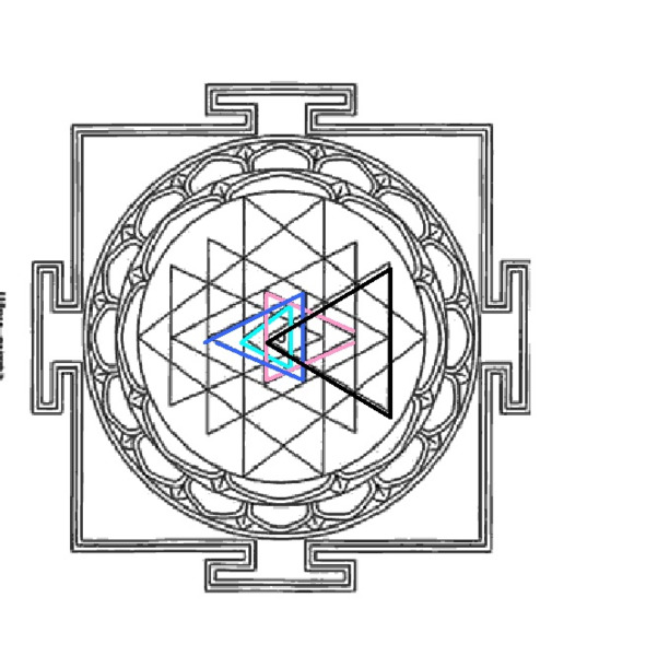 Здесь стоит сделать некоторые пояснения – у Шри-Янтры есть несколько начертаний и в предыдущих рассылках, да и в предыдущей схеме мы использовали не самое точное – тогда его «неточность не имела значения. В правильном варианте Шри-Янтра выглядит так: