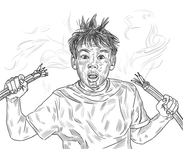 – работать металлическими предметами с током опасно, есть риск получить удар;