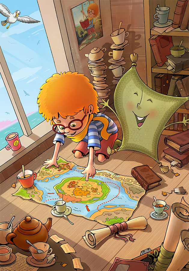 В первую очередь друзья отыскали и помыли грязные кружки. Потом расставили все книги по алфавиту, вынув из них чайные пакетики. Ян до последнего не терял надежды найти заветное руководство. Постепенно дело дошло до старинных папирусов, которые годами пылились в огромном сундуке. Открыв крышку, коврик заметил слабый золотистый свет. Пошуршав своими кисточками, он вытащил позолоченный свиток. Недолго думая, шёлковый друг Яна развернул его и увидел старинную карту: