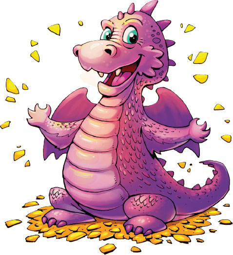 И тут случилось чудо: яркий свет залил всё подземелье, с дракона со звоном посыпалась чешуя. Когда друзья оправились от шока, то увидели, как сокровища медленно тают в воздухе. Перед ними стоял уже не золотой, а сиреневый дракон с широко расправленными крыльями.