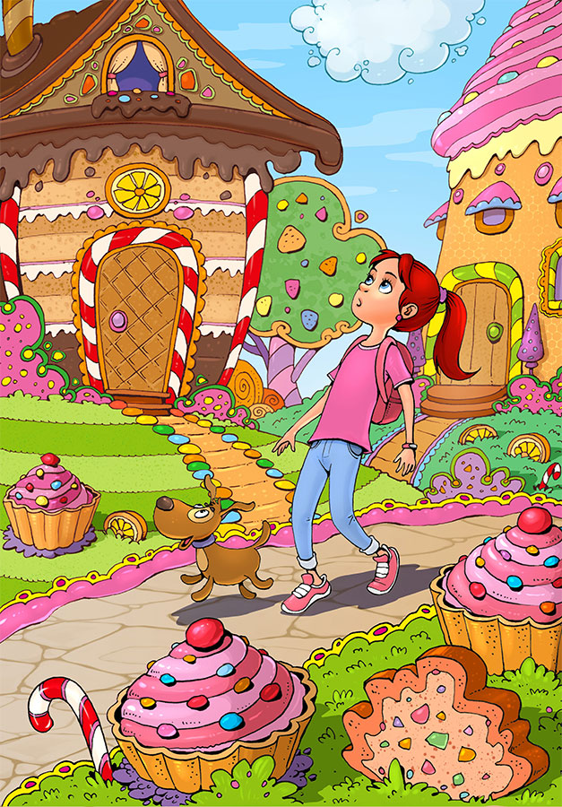 Её домик найти было несложно. Он стоял на окраине: красивый, как тортик, украшенный взбитыми сливками вместо крыши, окна – из разноцветных леденцов, забор – из мармеладок.