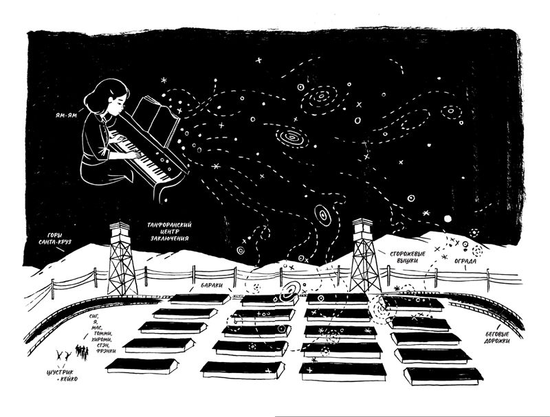 Вначале – шок. Вот мама, Фред и я скользим по дорогам Сан-Бруно, штат Калифорния, словно едем по шоссе 101 в Лос-Анджелес. И вот нам уже приказывают выйти из автобусов между сторожевыми вышками и вооруженными солдатами, и колючая проволока ограждает нас от остального города – от его улиц, школ, свободно гуляющих граждан.