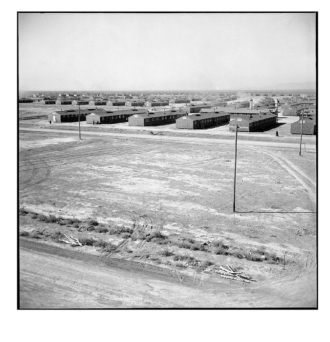 В каждом блоке есть обеденный зал и Н‐образная постройка с уборными и прачечными, с каждой стороны по шесть бараков и дополнительные строения для церквей, библиотек и рекреаций. Всего в лагере сорок два блока, но не все жилые – в двух бейсбольные поля, и еще четыре в самом центре пока не достроены.