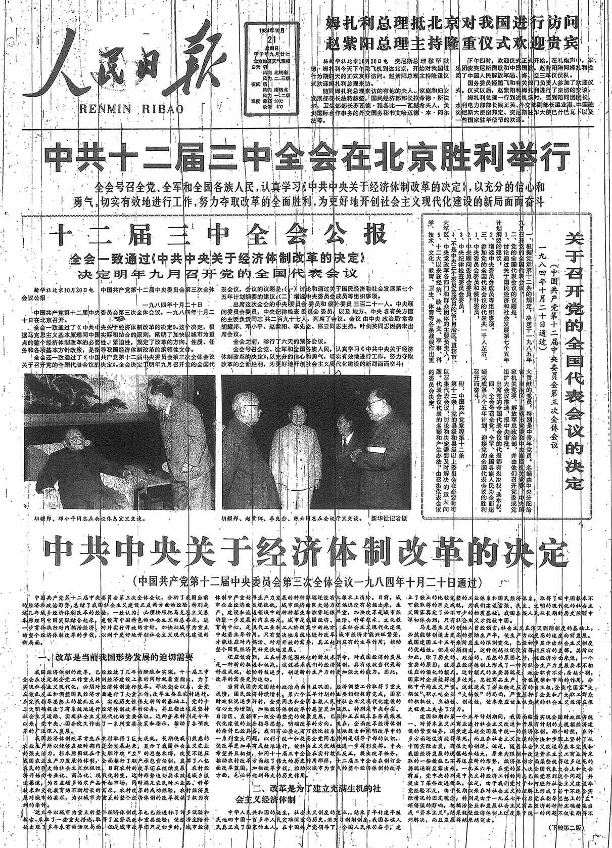 Die ländlichen Reformen erzielten bemerkenswerte Erfolge, und auch die Reformen in den Städten wurden umfassend eingeleitet. Im Oktober 1984 verabschiedete das Dritte Plenum des XII. Zentralkomitees der KPCh den Beschluss über die Änderung der Verfassung der Volksrepublik China. Damit begann die Reform des städtischen Wirtschaftssystems. In diesem Kontext wurde auch die Reform des medizinischen Systems Chinas in Angriff genommen.