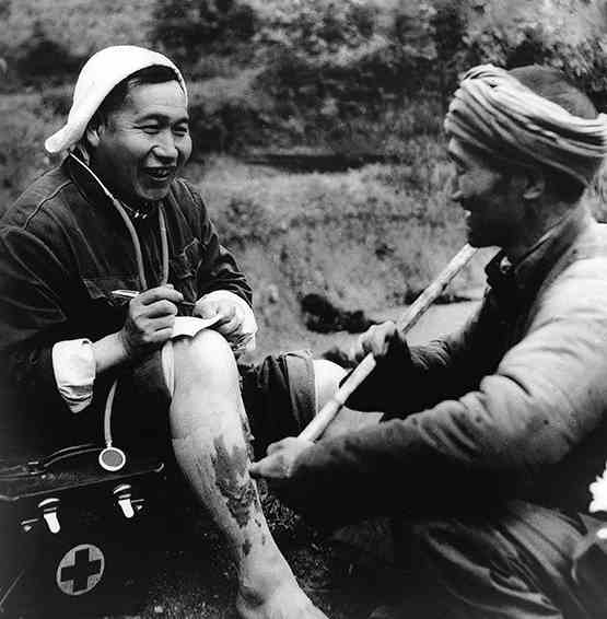 „Damals trugen wir unsere Medikamentenkästen auf dem Rücken und gingen von Tür zu Tür.Wir fragten: ,Onkel,geht es dir besser? Tante, wie geht es dir? Oma, brauchst du Hilfe?“ Ich habe jedes Haus besucht. Die Leute vertrauten mir, weil ich Arzt war. Wenn wir auf den Feldern arbeiteten, stellten wir die Medikamentenkiste auf einen Hügel. Wenn jemand Kopfschmerzen hatte, gaben wir ihm etwas Aspirin. Und wenn jemand Zahnschmerzen hatte, halfen wir auch dort – wir waren die medizinische Gruppe.“