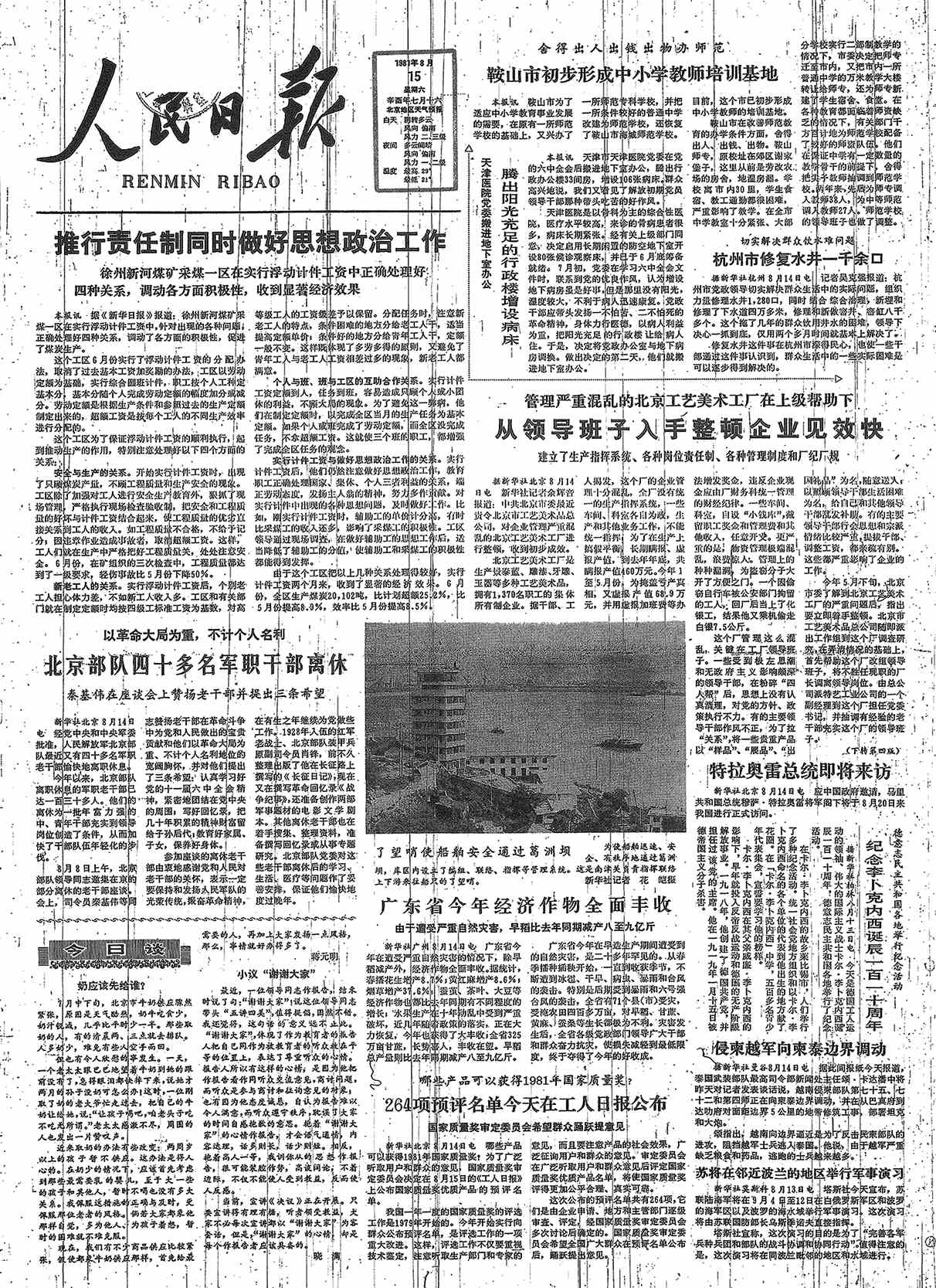 Am 15. August 1981 berichtete die Volkszeitung auf ihrer Titelseite über einen Vorfall im Tianjin-Krankenhaus: Das Parteikomitee beschloss, die Verwaltungsabteilungen in den Keller zu verLegen,um dort 106 zusätzliche Betten aufzustellen – eine Maßnahme gegen den akuten Bettenmangel.
