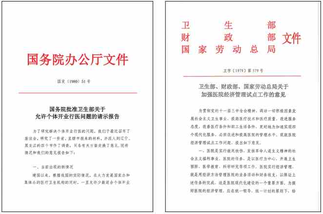 Am Neujahrstag 1979 erklärte der damalige Leiter des Gesundheitsministeriums in einem Interview mit der Nachrichtenagentur Xinhua, dass auch das Gesundheitswesen den wirtschaftlichen Gesetzmäßigkeiten folgen und medizinische und gesundheitliche Projekte mit wirtschaftlichen Mitteln verwalten müsse.