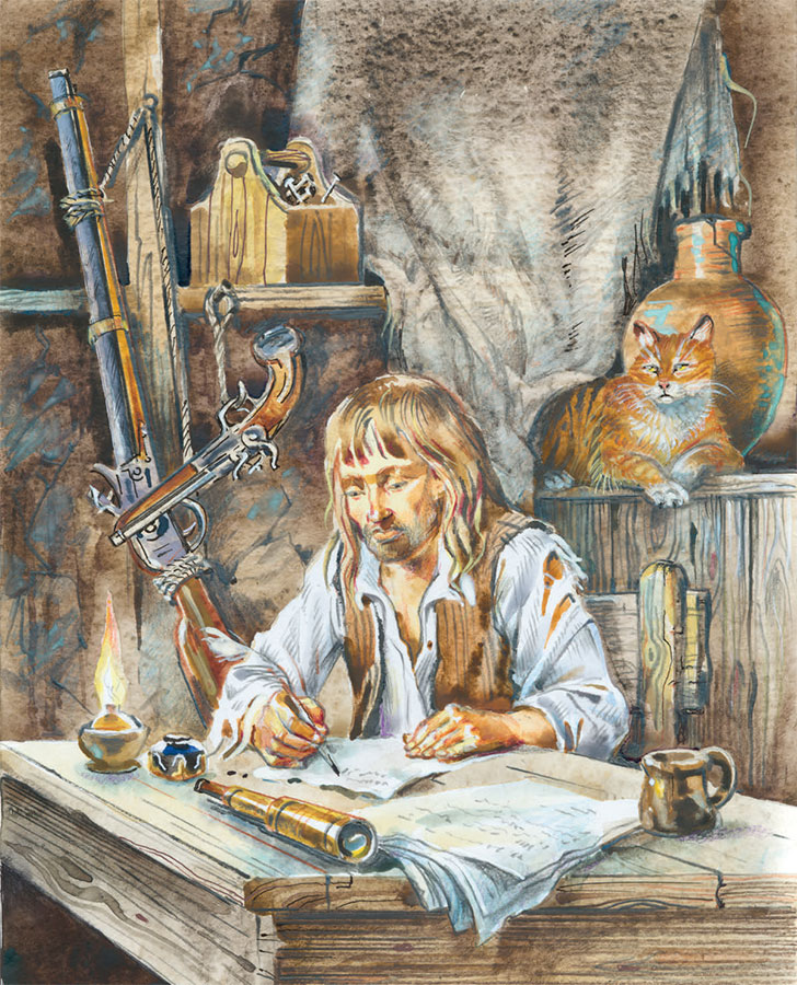 30 сентября 1659 года. Я, несчастный Робинзон Крузо, потерпев кораблекрушение во время страшной бури, был выброшен на берег этого угрюмого, злополучного острова, который я назвал островом Отчаяния. Все мои спутники с нашего корабля потонули, и сам я был полумёртв.