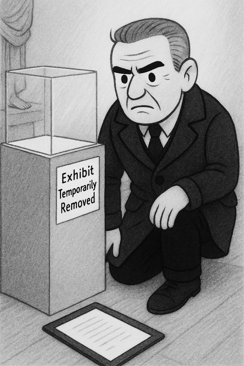 Historical museum looks dark and unfriendly. It is closed today because of the crime. The museum director, Mrs Brown, greets Detective Peters dryly.