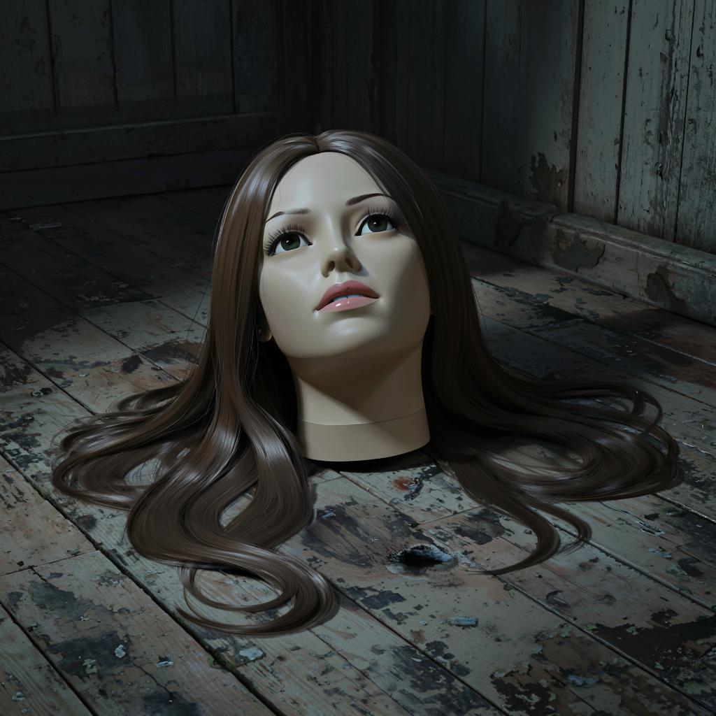 Голова женского манекена являлась главным реквизитом во всех 25 однотипных фильмах режиссёра самородка Эдгара Колдунова. В каждом его фильме герои находили эту измазанную кетчупом голову прежде чем появлялся маньяк. Нередко и сам маньяк размахивал этой головой, чтобы напугать своих жертв.