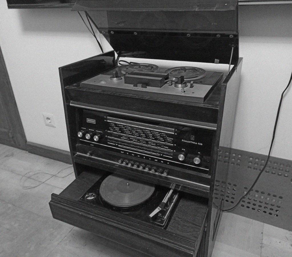 – Это радиола, старинный музыкальный аппарат на радиолампах, который совмещал в себе радиоприёмник и виниловый проигрыватель, а тут ещё и катушечный магнитофон наверху. Такие аппараты были популярны в 50-60 годы, наверное, сейчас он стоит много денег.