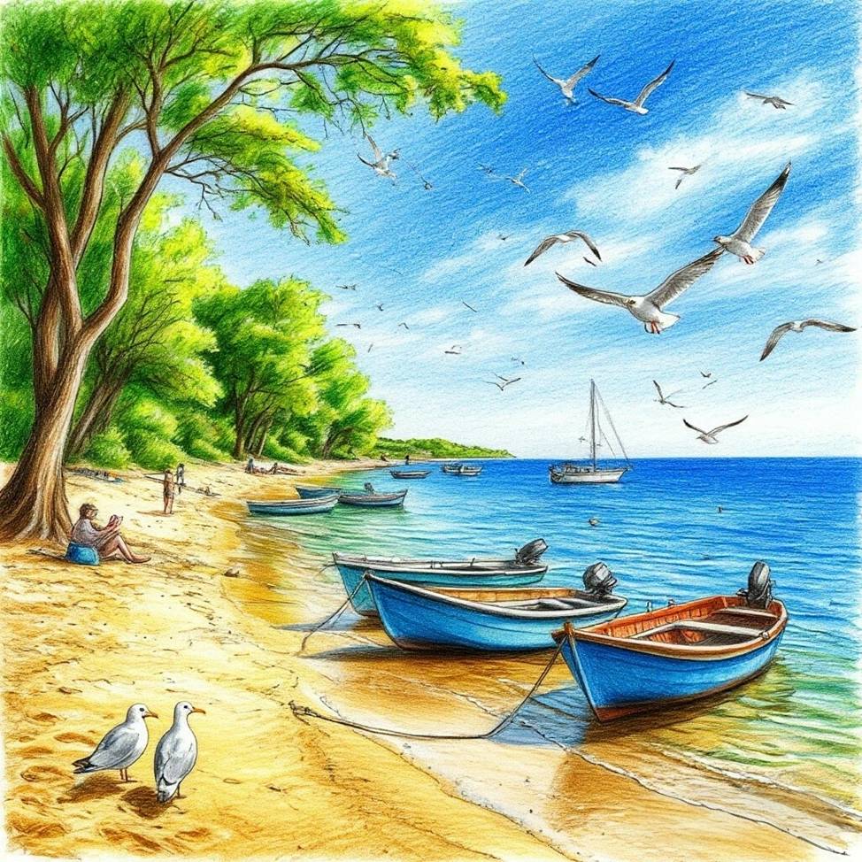 После чая мальчик-девочка взял альбом, лист бумаги гладкий, чистый, словно ждал его прикосновения. Остро заточенный карандаш скользил по бумаге легко, оставляя тонкие линии. Сначала он наметил контуры будущего рисунка ― спокойное море, волны лениво плескались о берег. Затем он добавил зеленые деревья, золотистый песок, голубое высокое небо. Постепенно появлялись детали ― рыбацкие лодки, морские птицы, отдыхающие люди. Цвета насыщенные, яркие, живые. Он чувствовал, как погружался в собственный мир, свободный и счастливый. Сердце билось ровно, дыхание спокойное, душа радовалась каждой линии, каждому штриху. Наконец последний мазок нанесен, работа была завершена. Мальчик-девочка рассматривал готовый рисунок долго, улыбаясь миру, созданному им самим.